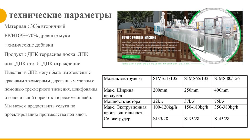 Ко-экструзионная линия для производства террасной доски из ПЭ ДПК